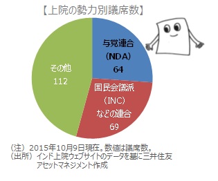 モディ政権が進める経済構造改革(モディノミクス)は、目玉とされた物品・サービス税(GST)法案と土地収用法案の審議が止まり、進展が足踏みしています。与党インド人民党(BJP)は上院で少数政党にとどまり、スムーズな議会運営が困難なためです。上院議員のほとんどが地方議会での間接選挙で選出されるため、BJPは「州議会選挙」で勝利を重ねて議席数を増やすことを狙っています。