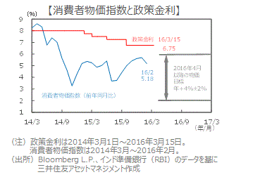 ■RBIが注視するとしていた2月末発表の16年度(16年4月~17年3月)政府予算案では、従来通りの財政再建計画が確認できました。物価が安定的に推移するなか、市場ではRBIが次回4月5日の会合で利下げするとの見方が強まっています。