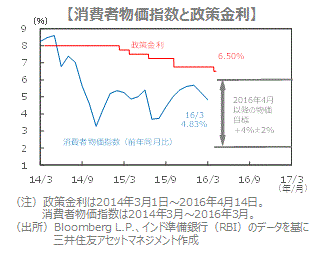 ■物価は、景気拡大ペースが緩やかなことなどから落ち着いた動きになると考えられ、RBIの目標レンジ(年+4%±2%)内で推移しそうです。今後見込まれている公務員給与の引き上げ幅や、モンスーン期における降水量によってはインフレが上振れるリスクがあります。
