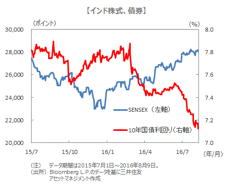 ■インド株式市場は、好調な景気や改革期待を背景に、主要株価指数であるSENSEXが8日、年初来高値に迫るなど、堅調に推移しています。また、インドの10年国債利回りは7.1%台と約3年ぶりの水準に低下しています。RBIの適切な金融政策運営がインドの金融市場をサポートすると期待されます。