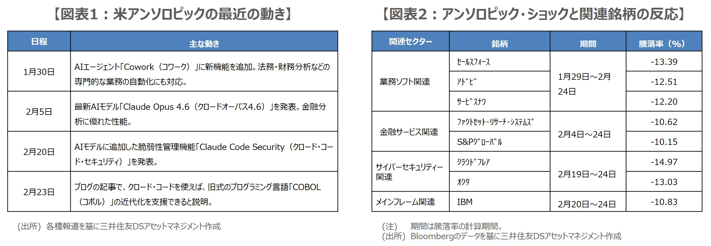 ●米アンソロピックは1月30日以降、法務・財務分析の自動化など、AIの新機能を立て続けに発表。