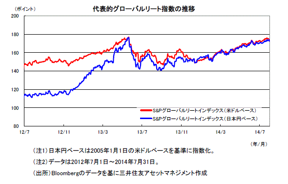 リート価格は上昇しました。米国などの主要国の国債利回りの低下や低金利環境が長期化するとの観測が強まり、リートに資金が流入しやすい環境が続きました。また、米ドルが円に対して上昇したことなどから、円ベースでは上昇が大きくなりました。