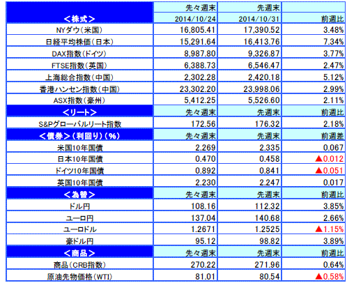 先週のマーケットの振り返り(2014/10/27-10/31)【ウィークリー】