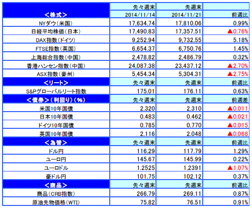 先週のマーケットの振り返り(2014/11/17-11/21)【ウィークリー】