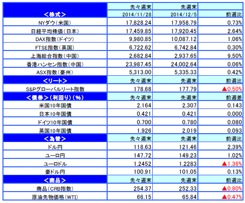 先週のマーケットの振り返り(2014/12/1-12/5)【ウィークリー】