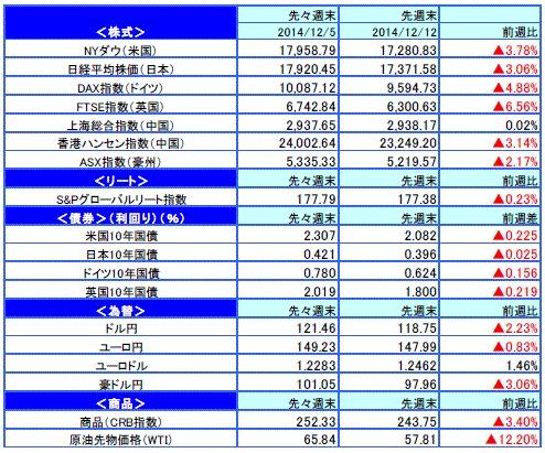 先週のマーケットの振り返り(2014/12/8-12/12)【ウィークリー】