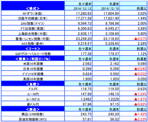 先週のマーケットの振り返り(2014/12/15-12/19)【ウィークリー】