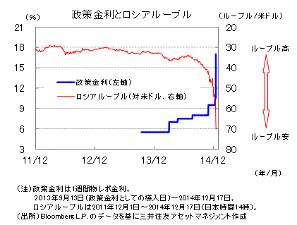 ☆12/17【ロシア株式市場、通貨の動向と今後の見通し】原油安が経済、財政への不安を増長、原油の動向がカギ