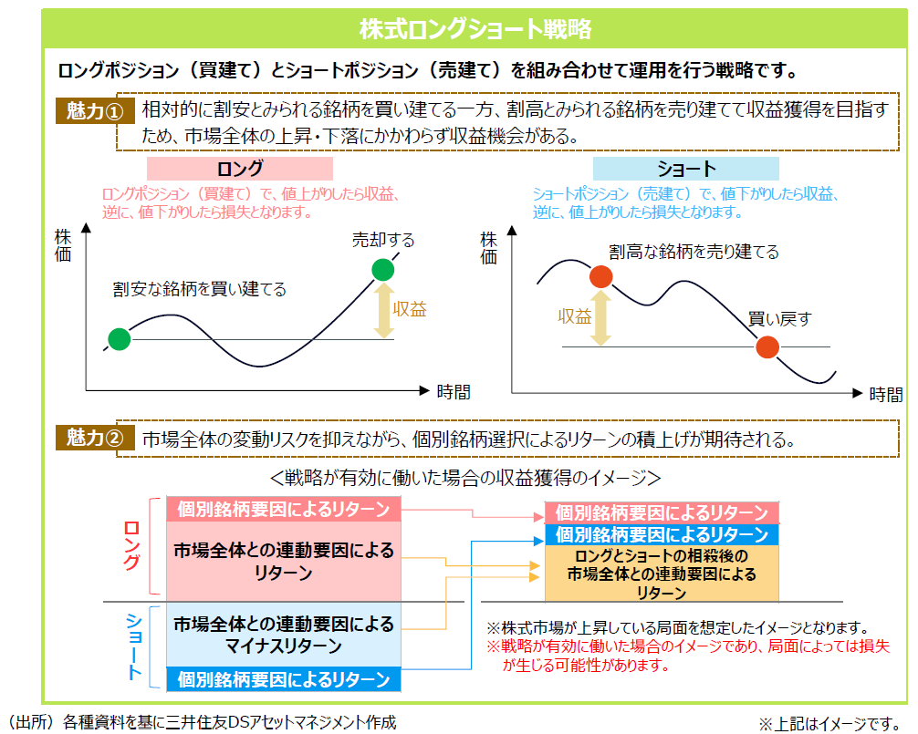 その中でも、株式の代表的なヘッジファンド戦略である「株式ロングショート戦略」について解説します。