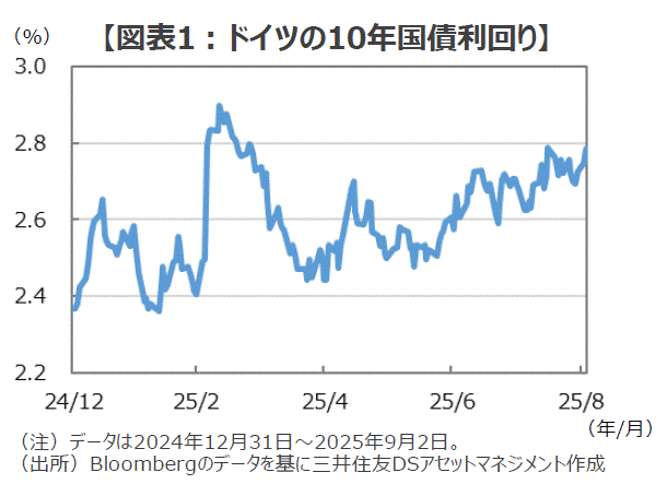 ■長年にわたり厳格な緊縮財政を続けてきたドイツは、防衛費に関するトランプ大統領からの要請を受けて方針を大転換し、財政拡張に舵を切りました。3月には憲法を改正して債務ブレーキ(財政赤字GDP比0.35%以内)を緩和して、GDP比1%を超える防衛費については借り入れにより賄えるようになり、インフラ向けに5,000億ユーロ(約86兆円)の特別基金の設立を決定しました。そして、欧州の主要国は2025年6月の北大西洋条約機構(NATO)首脳会議で、2035年までに防衛費を従来のGDP比2%から同5%(防衛費3.5%、同インフラ関連1.5%)へ引き上げることを正式に決定しました。