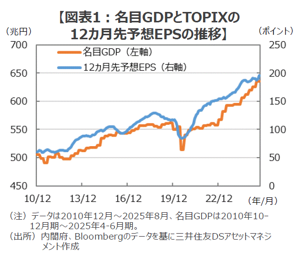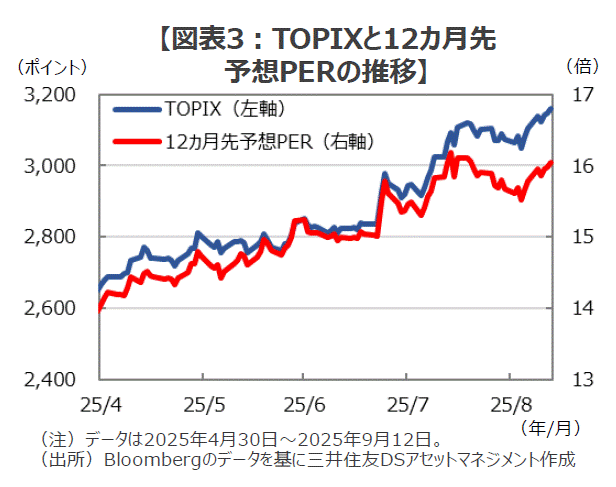 ■このところの日本株の上昇相場は、参議院選挙の3日後の7月23日に急転直下で日米の関税交渉が決着したことをきっかけに始まりました。しかし、エコノミストを始めとする市場関係者の多くは、「トランプ関税の影響が本格化するのはこれから」として、日本経済の行く末を懸念する意見が大勢でした。このため、にわかに動き始めた株価について、「景気不安の残る中での不自然な株高」との見方が多数派だったように思われます。