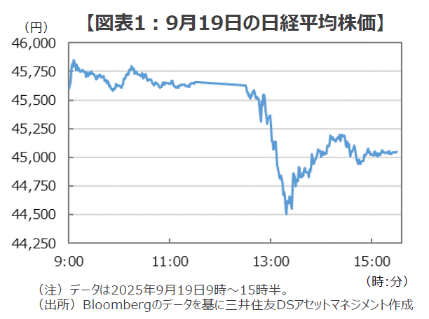 ■日銀によるETF売却は以前より噂となっていましたが、市場の関心が「政策金利の動向」に集まっていたこともあって、発表のタイミングとしては市場の意表を突く結果となり、株式市場は一時的に急落する場面も見られました(図表1)。とはいえ、発表タイミング以上に違和感があるのは、その「あまりに遅い」ETFの売却ペースではないでしょうか。