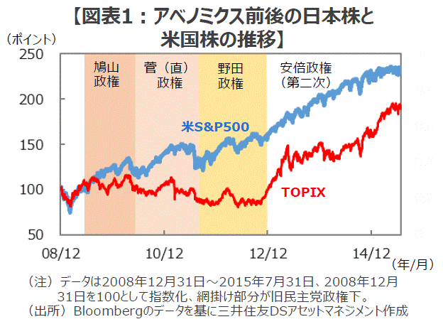 ■「アベノミクス」は2012年12月26日に発足した第2次安倍政権による経済政策で、①大胆な金融緩和、②機動的な財政支出、③構造改革による成長戦略の3本柱からなります。自民党が解散総選挙で大勝した同年12月16日の投票日直前の日経平均株価(日経平均)は9,737円56銭でしたが、わずか5カ月後の2013年5月には15,627円26銭(約+60.5%)をつけ、3年後の2015年6月には同年高値の20,868円03銭(同約+114.3%)まで上昇しました。