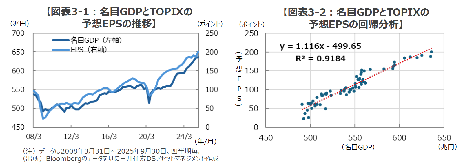企業による設備投資の積み増しは名目GDPや企業利益の増加ペースを押し上げ、さらに、増益率の高まりがPERを拡大させることで、株価にポジティブなインパクトを与える可能性が高そうです。